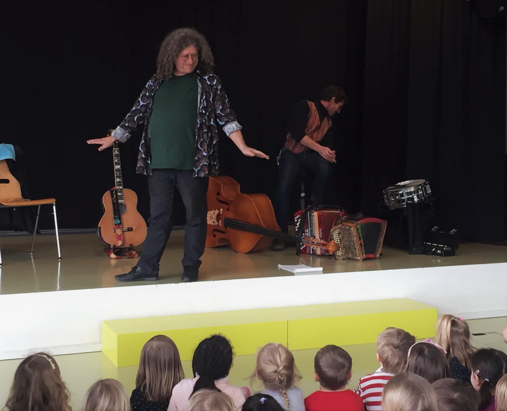 Unser neues Kinderprogramm ist eine wahre Freude. Es macht sehr viel Spass mit Bruno auf der Bühne zu stehen, er reagiert mit jedem Instrument energiegeladen und maximal dynamisch. Mit seiner Unterstützung kann ich meine Lieder und improvisierten Geschichten erst so richtig entfalten und lustvoll inszenieren. Die Kinder sind fasziniert und reagieren mit echter Resonanz, spontan, frech, wunderbar. Sie belohnen uns auf ihre Art.