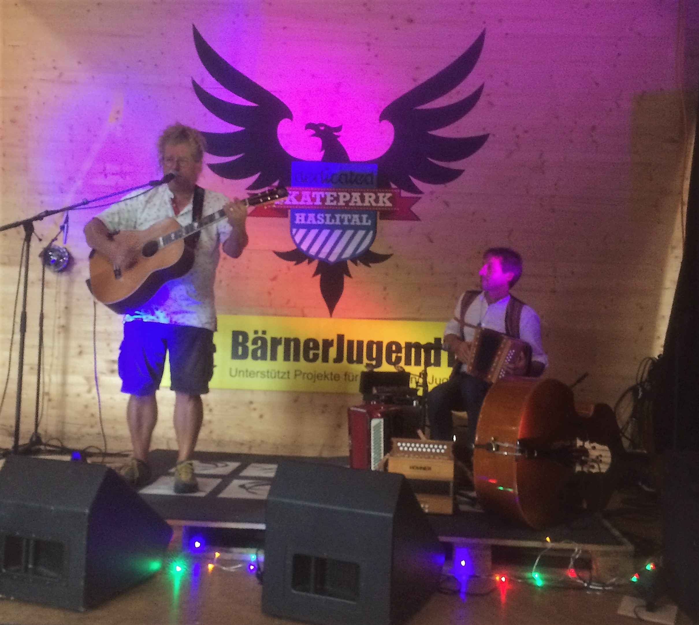 Bruno Raemy und ich hatten heute Première als TRALIWATSCH im Skatepark Meiringen. Das Konzert wurde organisiert von der Jugendarbeit Haslital-Brienz mit Unterstützung vom Bärner Jugendtag.