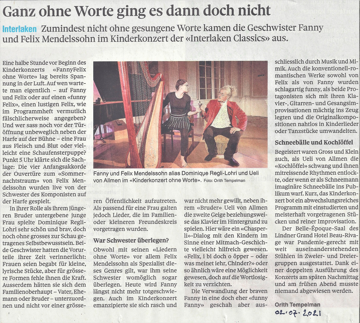 Die Abwechslung aus Instrumenten, Schauspiel, Tanz und eben auch Spass/Humor, die Dominique Regli-Lohri und Ueli von Allmen bieten, habe ich so noch nie gesehen.